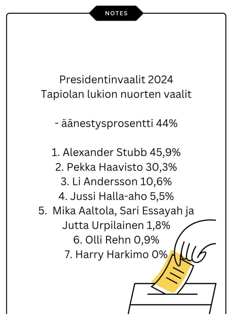 Lopulta Suomen kansa valitsi 11.2. nuorten tavoin Suomen 13. tasavallan presidentiksi Alexander Stubbin. Kyllä nuoret tietävät!