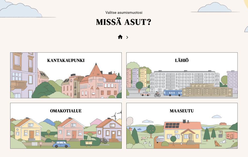 Selkeälle ja visuaalisesti raikkaalle sivustolle on koottu tieteelliseen tutkimukseen perustuvaa tietoa, jonka tarkoituksena on helpottaa kestävämpien valintojen tekemistä arjessa. Neuvoja löytyy niin asumisen, vaikuttamisen, kierrättämisen kuin remontoinninkin saralta, ja valtaosa ratkaisuista parantaa ympäristökuormituksen keventämisen ohella asumisen laatua ja pienentää sen kustannuksia.