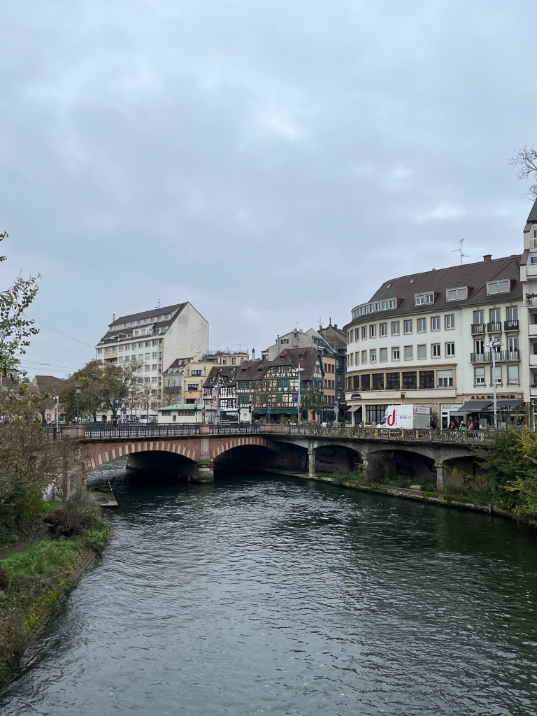 Frankfurtissa bussi on aluksi hukassa, mutta pian jo kiidämme autobaanalla vitosmotaria kohti Strasbourgin suurta ja tunnistettavaa katedraalia. Perille tultaessa olemme myöhässä, joten heitämme vain laukut suloiseen hotelliimme, jossa jokainen huone on taideteoksia täynnä. Kiirettä on pidettävä ehtiäksemme Strasbourgin kiertokävelylle. Onneksi kerkeämme kuulemaan Strasbourgin historiasta sekä katedraalin yksityiskohdista ja päädymmekin lopulta Petit-Strasbourgiin sateen kastellessa meitä reilusti. Sää ei ehkä ole otollisin, mutta joulukauppojen tuhannet joulukoristeet hymyilyttävät silti.
