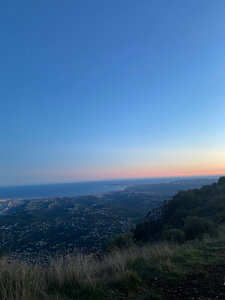 Tänään pääsin taas sukeltamaan syvemmälle vaihtoparini maailmaan, kun menimme aamulla kokeilemaan hänen toista harrastustaan eli kuvataidetta. Iltapäivällä lähdimme vaellukselle vuorille. Menimme monen ystävän joukoin patikoimaan ylös vuorta. Näkymät olivat ennennäkemättömät ja aivan upeat. Näimme koko Nizzan ja merelle asti. Olimme niin korkealla, että tuntui kuin olisimme olleet lentokoneessa. Jäimme yöksi nukkumaan vuorelle ja vietimme mahtavan illan. Katselimme auringon laskevan toisten vuorien taakse. Pimeässä katselimme tähtiä, söimme ja kuuntelimme musiikkia. Illalla yllättävin kommentti vaihtopariltani oli: ”Tänään oli hyvä päivä, ihan normaali päivä.” Minä taas koin päivän ihan uudenlaiseksi ja mahtavaksi.
